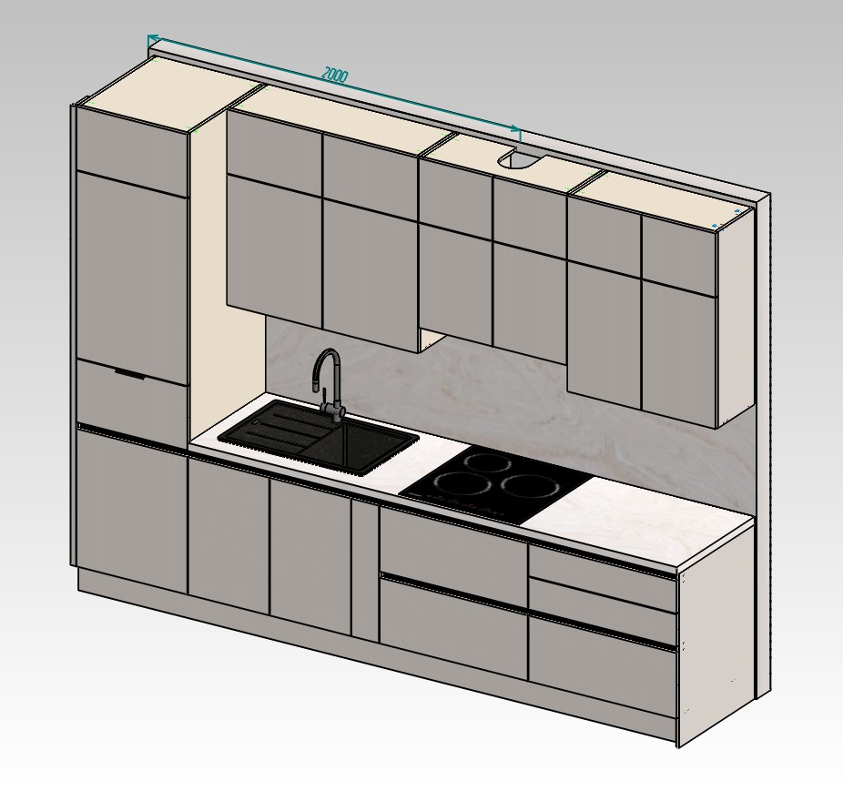 Современный кухонный гарнитур с лаконичным дизайном, включающий вместительные верхние и нижние шкафы, интегрированную мойку и варочную панель. Идеально подходит для создания функционального и стильного кухонного пространства, обеспечивая удобное хранение и комфорт при приготовлении пищи.