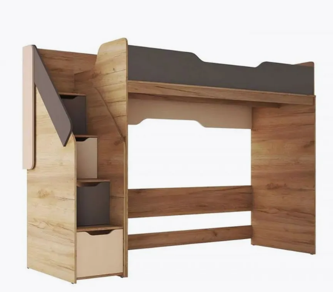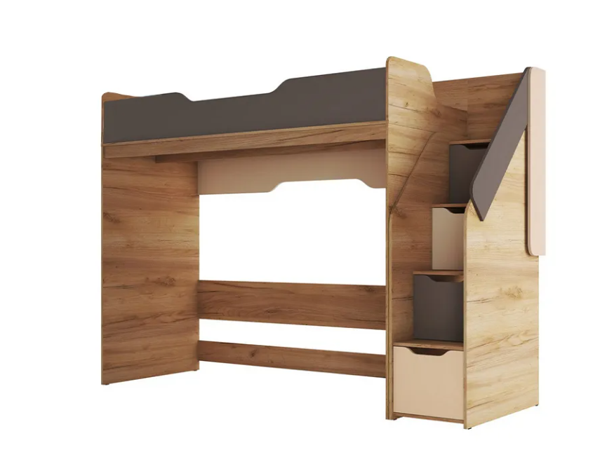 Многофункциональная кровать-чердак – идеальное решение для оптимизации пространства в детской или подростковой комнате. Верхний ярус обеспечивает комфортное спальное место, а под ним остается просторная зона для игр, учебы или отдыха. Удобная лестница оснащена вместительными выдвижными ящиками, предлагая дополнительное место для хранения игрушек, одежды или школьных принадлежностей. Современный дизайн и универсальная цветовая гамма легко впишутся в любой интерьер.